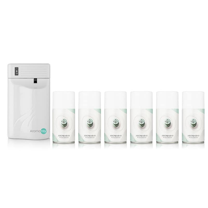 המכשיר מגיע עם 6 בקבוקי אירוסול בגדלים של עד 275 מ"ל לבחירתכם עם מבחר ניחוחות מהפנטים.